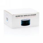 Głośnik bezprzewodowy 3W, BT 2.1, geometryczna obudowa z ABS, miejsce na znakowanie w górnej części, na spodzie silikonowy pasek poprawiający stabilność i jakość dźwięku, wbudowany akumulator o pojemności 300 mAh umożliwia odtwarzanie muzyki do 4 godzin, ponowne naładowanie w 1 godzinę, zasięg do 10 m, wzór zastrzeżony®