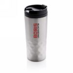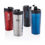 Geometryczny kubek podróżny 300 ml, plastikowe wnętrze, stal nierdzewna na zewnątrz, wyłącznie mycie ręczne