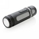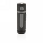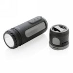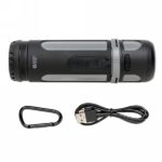 Głośnik bezprzewodowy 3W, power bank 4400 mAh, wejście 2A, wyjście 5V/2A, lampka kempingowa LED z jasnym światłem 200-250 lm, latarka z 4 trybami świecenia (standardowy, silny, słabszy i migający), wbudowany akumulator umożliwia odtwarzanie muzyki do 18 godzin na jednym naładowaniu, kabel micro USB i karabińczyk w komplecie