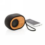 Bambusowy głośnik bezprzewodowy 5W, BT 4.2, wewnątrz komponenty wysokiej jakości gwarantujące czysty dźwięk i długotrwałe użytkowanie, wykonany został zgodnie z ideą zrównoważonego rozwoju z wykorzystaniem trwałych materiałów, wytrzymałego bambusa i tkaniny (30% organicznej bawełny, 40% konopi, 30% PET z recyklingu), w pełni naładowany akumulator 1500 mAh umożliwia odtwarzanie muzyki do 8 godzin, zasięg do 10 m, wzór zastrzeżony®