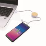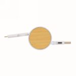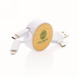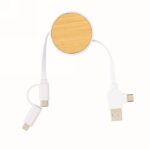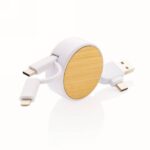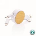 Kabel do ładowania, końcówki: USB, 2 x USB C, micro USB, iOS, obudowa wykonana z bambusa z certyfikatem FSC i ABS z recyklingu, kabel wykonany z TPE z recyklingu, kabel i obudowa posiadają certyfikaty RCS, długość 100 cm, nie zawiera PVC