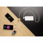 Kabel do ładowania, końcówki: USB, 2 x USB C, 2 w 1 (micro USB oraz kompatybilna z urządzeniami iOS), obudowa wykonana z bambusa i ABS, kable z TPE niezawierającego PVC, długość 120 cm
