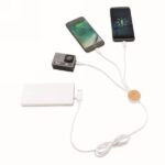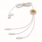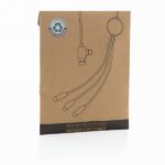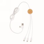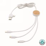 Kabel do ładowania, końcówki: USB, 2 x USB C, micro USB, iOS, obudowa wykonana z bambusa z certyfikatem FSC i ABS z recyklingu, kabel wykonany z TPE z recyklingu, kabel i obudowa posiadają certyfikaty RCS, długość 120 cm, nie zawiera PVC