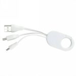 Kabel do ładowania z 3 końcówkami: USB, USB typu C oraz końcówką 2 w 1 (micro USB oraz kompatybilną z urządzeniami iOS), z karabińczykiem