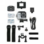 Kamera sportowa HD, rozdzielczość 720p, wyświetlacz TFT LCD 1.5″, możliwość rozszerzenia pamięci za pomocą karty micro SD do 32 GB (nie jest dołączona), czas nagrywania do 70 minut, wodoodporny pokrowiec i 11 akcesoriów w komplecie
