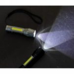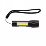 Kieszonkowa latarka LED 3W (65 lumenów) ze światłem COB (37 lumenów), wykonana z aluminium wysokiej jakości, zasięg świecenia do 85 metrów, 3 tryby oświetlenia (silny, normalny, światło migające), funkcja zoom, baterie w komplecie