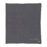 Koc z frędzlami, tkany, wykonany z przędzy Polylana®, która pochodzi z recyklingu, dzięki czemu każdy koc pozwala na zaoszczędzenie 51,5 l wody, dzięki zastosowaniu technologii AWARE™ wykorzystane materiały są identyfikowalne z pochodzenia, wymiar 130 x150 cm, 2% wpływów z każdego sprzedanego produktu jest przekazywane na rzecz Water.org,