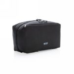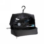 Kosmetyczka z chowanym haczykiem, wiele siateczkowych kieszeni wewnątrz, kieszeń na szczoteczkę do zębów z magnetycznym zamknięciem, kieszeń na zamek, zewnętrzna kieszeń na przybory do golenia, konstrukcja umożliwia powieszenie lub postawienie kosmetyczki, wszystkie kieszenie można wywrócić na drugą stronę w celu wyczyszczenia, nie zawiera PVC
