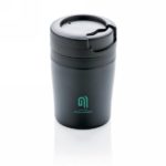 Kubek podróżny 160 ml, podwójne ścianki, wnętrze z PP, łatwe w użyciu wieczko chroni przed rozlaniem, nadaje się do kawy Ristretto, Espresso i Lungo, wyłącznie mycie ręczne, dzięki wysokości 8 cm kubek pasuje do większości ekspresów do kawy, wzór zastrzeżony®