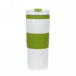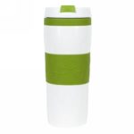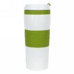 Kubek termiczny 360 ml Air Gifts, z kolorową silikonową opaską, miedziana izolacja próżniowa, podwójne ścianki ze stali nierdzewnej z próżnią między ściankami, dzięki czemu zachowuje funkcje termosu i długo utrzymuje temperaturę nie oddając jej na zewnątrz, plastikowe wieczko, szczelne zamknięcie, nie wymaga obsługi oburącz, błyszczące wykończenie, klasa termiczna: 2 +leakproof