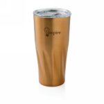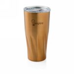 Kubek termiczny 480 ml, podwójne ścianki z próżnią i miedzianą izolacją między ściankami, wykonany ze stali nierdzewnej 304, utrzymuje temperaturę ciepłych napojów do 8 godzin oraz zimnych do 24 godzin, pokrywka z przyciskiem i zasuwanym zamknięciem, specjalna konstrukcja zapobiega kondensacji na zewnątrz kubka, wieczko chroni przed rozlaniem, wyłącznie mycie ręczne, w ozdobnym pudełku, klasa termiczna: 3