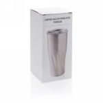 Kubek termiczny 480 ml, podwójne ścianki z próżnią i miedzianą izolacją między ściankami, wykonany ze stali nierdzewnej 304, utrzymuje temperaturę ciepłych napojów do 8 godzin oraz zimnych do 24 godzin, pokrywka z przyciskiem i zasuwanym zamknięciem, specjalna konstrukcja zapobiega kondensacji na zewnątrz kubka, wieczko chroni przed rozlaniem, wyłącznie mycie ręczne, w ozdobnym pudełku, klasa termiczna: 3
