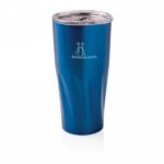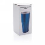 Kubek termiczny 480 ml, podwójne ścianki z próżnią i miedzianą izolacją między ściankami, wykonany ze stali nierdzewnej 304, utrzymuje temperaturę ciepłych napojów do 8 godzin oraz zimnych do 24 godzin, pokrywka z przyciskiem i zasuwanym zamknięciem, specjalna konstrukcja zapobiega kondensacji na zewnątrz kubka, wieczko chroni przed rozlaniem, wyłącznie mycie ręczne, w ozdobnym pudełku, klasa termiczna: 3