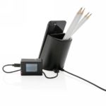 Ładowarka bezprzewodowa 5W, organizer na biurko, stojak na przybory do pisania, grawer ukazuje podświetlaną powierzchnię, bezprzewodowe ładowanie jest kompatybilne ze wszystkimi urządzeniami posiadającymi możliwość ładowania indukcyjnego, wejście 5V/3A, wyjście bezprzewodowe 5V/1A 5W, kabel micro USB 150 cm w komplecie