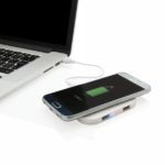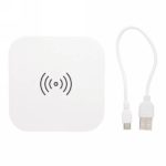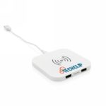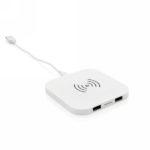 Ładowarka bezprzewodowa 5W, wykonana z ABS, dwa wyjścia USB do ładowania telefonów starszej generacji za pomocą kabla, bezprzewodowe ładowanie jest kompatybilne ze wszystkimi urządzeniami posiadającymi możliwość ładowania indukcyjnego, wejście 1A, wyjście USB 5V/1A, wyjście bezprzewodowe 5W