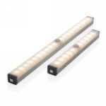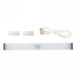 Lampka LED z czujnikiem ruchu, średnia, 10 diod LED, magnes z tyłu do przytwierdzenia do metalowych powierzchni, 2 magnesy z naklejką do przytwierdzenia do niemetalicznych powierzchni w komplecie, dwa tryby pracy: świecenie ciągłe oraz włączane automatycznie za pomocą czujnika ruchu, dioda włącza się po wykryciu ruchu i wyłącza się 35 sekund po ostatnim wykrytym ruchu, zasięg roboczy czujnika do 3m, wbudowany akumulator 500 mAh pozwala na ciągłe świecenie do 4,5 godziny, ładowanie za pomocą dołączonego kabla micro USB