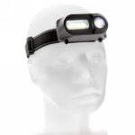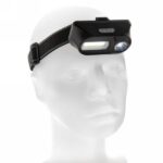 Latarka na głowę z 2 światłami, światło COB 180 lumenów do oświetlania przedmiotów w pobliżu, światło LED 90 lumenów o zasięgu świecenia do 80m, 3 tryby świecenia (jasny, przyciemniony, migający), wykonana z ABS, czas świecenia do 3 godzin, elastyczny, regulowany pasek, baterie w komplecie