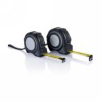 Miara 3 m, przycisk zwalniający, żółta taśma o szerokości 16 mm, obudowa wykonana z ABS, gumowany uchwyt z samozamknięciem, posiada klip i gumowy pasek na rękę
