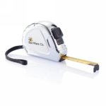 Miara 5 m, funkcja auto stop, żółta, matowa taśma o szerokości 19 mm, obudowa wykonana z chromowanego ABS, klip ze stali nierdzewnej