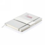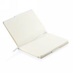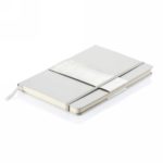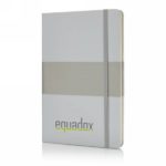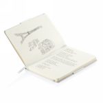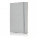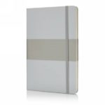 Notatnik A5 (80 kremowych kartek 80 g/m2 w linie), twarda okładka, tasiemka zakładkowa, elastyczna opaska do zamykania, obwoluta, zaokrąglone rogi