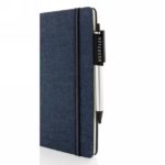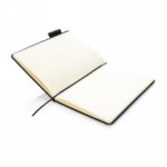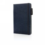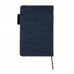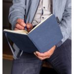 Notatnik A5 (80 kremowych kartek 80 g/m2 w linie), twarda dżinsowa okładka, tasiemka zakładkowa i elastyczna opaska do zamykania
