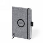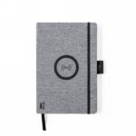 Notatnik A5(80 kartek w linie), ładowarka bezprzewodowa 10W, działa z telefonami posiadającymi możliwość ładowania indukcyjnego, elastyczna opaska do zamykania, twarda okładka