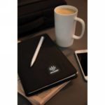Notatnik A5 (64 kremowe kartki 80 g/m2 w linie), okładka wielokrotnego użytku, grawer ukazuje podświetlaną powierzchnię, 2 baterie CR2032 w komplecie