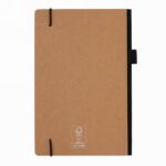 Notatnik A5, (80 kremowych kartek w linie), twarda okładka, okładka oraz strony wewnętrzne posiadają certyfikat FSC® (Forest Stewardship Council), tasiemka zakładkowa, elastyczna pętla na długopis, z tyłu kieszonka na luźne notatki