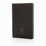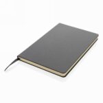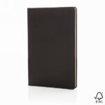 Notatnik A5, (80 kremowych kartek w linie), twarda okładka, okładka oraz strony wewnętrzne posiadają certyfikat FSC® (Forest Stewardship Council), tasiemka zakładkowa i elastyczna pętla na długopis