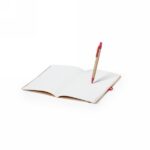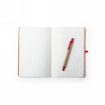 Notatnik A5 (60 pustych kartek) z kartonu z recyklingu, miękka okładka, elastyczna opaska do zamykania, długopis z korpusem wykonanym z kartonu z recyklingu oraz elementami ze słomy pszenicznej i ABS w komplecie