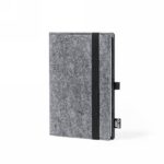 Notatnik A5 (100 pustych kartek), okładka wykonana z filcu RPET, tasiemka zakładkowa i elastyczna opaska do zamykania