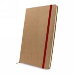 Notatnik (ok. A5, 96 kremowych kartek 70 g/m2 w linie), wykonany z papieru makulaturowego, twarda okładka, tasiemka zakładkowa, elastyczna opaska do zamykania