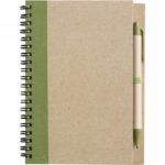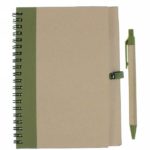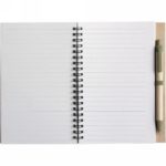 Notatnik (ok. A5, 60 kartek w linie), dołączony biodegradowalny długopis, spiralne bindowanie