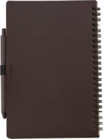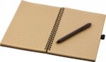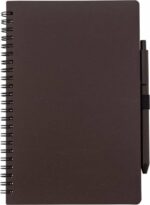 Notatnik ok. A5 (70 kartek w linie), kartki z papieru kraftowego 80 g/m2, okładka z łusek kawowych i PP, długopis z łusek kawowych, spiralne bindowanie