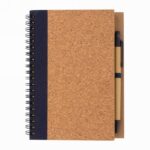 Notatnik (70 kremowych kartek z papieru makulaturowego 70 g/m2 w linie), korkowa okładka, spiralne bindowanie, dopasowany kolorystycznie długopis z papieru kraftowego w komplecie, niemiecki wkład Dokumental® w kolorze niebieskim w komplecie, długość pisania ok. 600 m