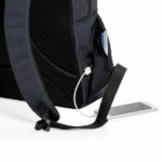 Plecak na laptopa 15″, wodoodporny (IPX5) głośnik bezprzewodowy z podświetleniem LED zmieniającym kolor, przekręcając głośnik można go łatwo odczepić od plecaka, gniazdo USB do ładowania telefonów (power-bank nie jest dołączony), odtwarzanie muzyki do 5 godzin, wzór zastrzeżony®