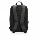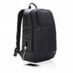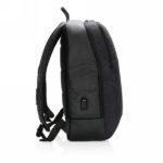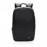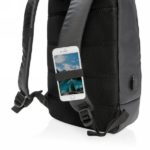 Plecak na laptopa 15″, wykonany z poliestru, wewnątrz główna przegroda na laptopa oraz przednia przegroda, uchwyt z przyssawkami na telefon na pasku na ramię, zintegrowany port USB do ładowania (power-bank nie jest dołączony)