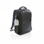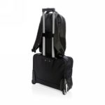 Plecak z miękką przegrodą na laptopa 15,6″, wykonany z wytrzymałego poliestru 900D, przestronna przegroda główna, przednia kieszeń na zamek, dopasowane paski zwiększają komfort noszenia, posiada pasek do zamocowania na walizce, nie zawiera PVC