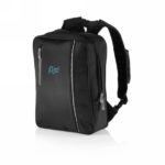 Plecak na laptopa 15,6″, wykonany z mikrofibry z szarymi, zamszowymi detalami, 2 przegrody z miejscem na laptopa, wyjście na słuchawki, kieszeń na telefon, regulowane paski na ramię, wzór zastrzeżony®