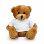 Brązowy miś z białą koszulką pod nadruk (koszulka pakowana oddzielnie), wykonany z pluszu pochodzącego z poddanych recyklingowi butelek PET, miś posiada certyfikat GRS (Global RecycIed Standard)