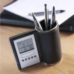 Pojemnik na przybory do pisania z kalendarzem, zegarem, alarmem i termometrem