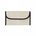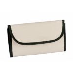 Portfel podróżny z licznymi przegrodami na dokumenty, zapięcie na rzep i mocowanie do paska