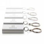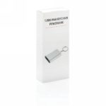 Kompaktowy power bank 1000 mAh, brelok do kluczy, lekka aluminiowa obudowa, wbudowany akumulator litowy pozwala na naładowanie telefonu do 50%, wyjście USB 5V/1A, wejście 5V/1A, kabel micro USB w komplecie