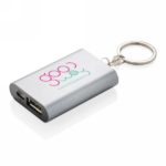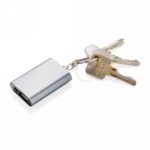 Kompaktowy power bank 1000 mAh, brelok do kluczy, lekka aluminiowa obudowa, wbudowany akumulator litowy pozwala na naładowanie telefonu do 50%, wyjście USB 5V/1A, wejście 5V/1A, kabel micro USB w komplecie