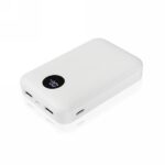 Power bank Air Gifts 10000 mAh, kieszonkowy rozmiar, cyfrowy wyświetlacz poziomu naładowania, wejścia 5V/2A: USB typu C oraz micro USB, 2 wyjścia USB (max. 5V/2A) do ładowania dwóch urządzeń jednocześnie, kabel USB typu C oraz filcowe etui z karabińczykiem w komplecie