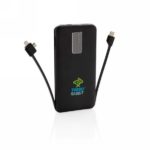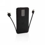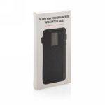 Płaski power bank 10000 mAh, wskaźnik poziomu naładowania (25%, 50%, 75%, 100%), wykonany z ABS, zintegrowany kabel 3 w 1 jest kompatybilny z wszystkimi urządzeniami dostępnymi na rynku, w pełni naładowany wbudowany akumulator litowo-polimerowy klasy A o dużej gęstości i trwałości pozwala naładować telefon do 5 razy, wejście 5V/2A, wyjście 5V/2A