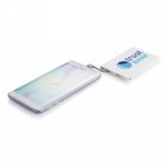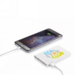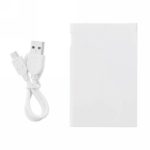 Cienki power bank 2500 mAh ze zintegrowanym kablem micro USB, z boku wyjście USB do ładowania za pomocą własnego kabla, wykonany z ABS, wyjście 5V/1A, wejście 5V/1A
