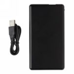 Płaski i trwały power bank 4000 mAh, trwały akumulator litowo-polimerowy, grawer ukazuje podświetlaną powierzchnię, wyjście 5V/2.1A, wejście 5V/1.5A, kabel micro USB w komplecie