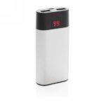 Power bank 4000 mAh, wyświetlacz cyfrowy LED wskazujący poziom naładowania, 2 wyjścia USB do ładowania 2 urządzeń jednocześnie, wykonany z wytrzymałego aluminium, wbudowany akumulator litowy, wyjście 2.1A pozwala ładować szybciej niż większość zwykłych ładowarek, wyjście 5V/2A, wejście 5V/1A, kabel micro USB w komplecie