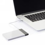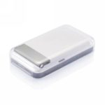 Power bank 4600 mAh, 4 diody wskazujące poziom naładowania, przycisk on/off, wbudowany akumulator litowo-polimerowy wysokiej jakości, wyjście 5V/2.1A, wejście 5V/1A, kabel micro USB i przezroczyste pudełko w komplecie